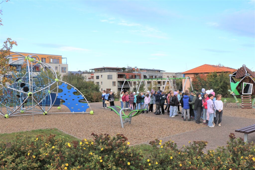 Plocha rozlehlého hřiště byla vybavena kvalitním bezpečným povrchem, který zároveň odvádí vodu zpět do přírody. Multifunkční prolézačky, houpačky, kolotoč i oplocené pískoviště doplňuje praktický městský mobiliář. Vedle laviček v areálu najdeme také stůl s lavicemi, který mohou rodiny využít k hraní deskových her nebo k pikniku, a nechybí ani stojan na kola.