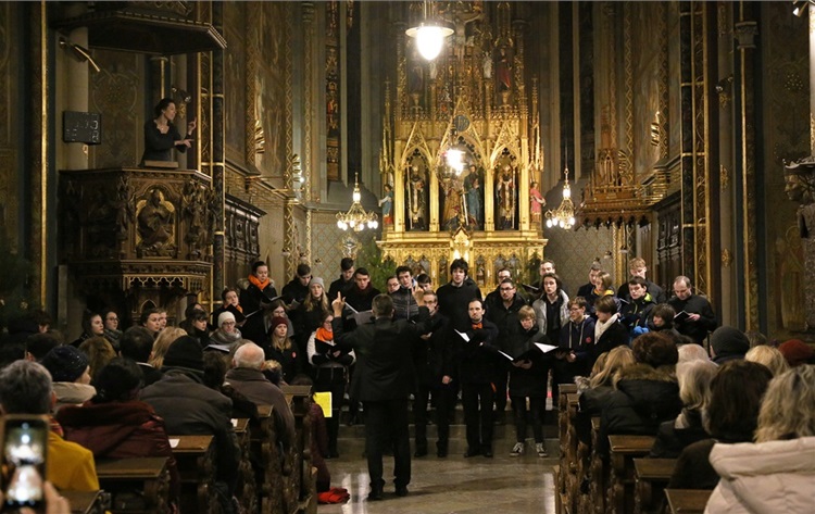 studentský pěvecký sbor Besharmonie a mužská část pěveckého sboru Pueri