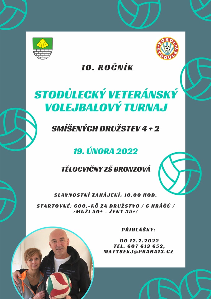 Zveme na vás na již 10. ročník Stodůleckého veteránského volejbalového turnaje smíšených družstev 4+ 2. Turnaj je určen volejbalovým veteránům – mužům, kteří v roce 2022 dosáhnou věku minimálně 50 let a ženám minimálně ve věku 35 let.