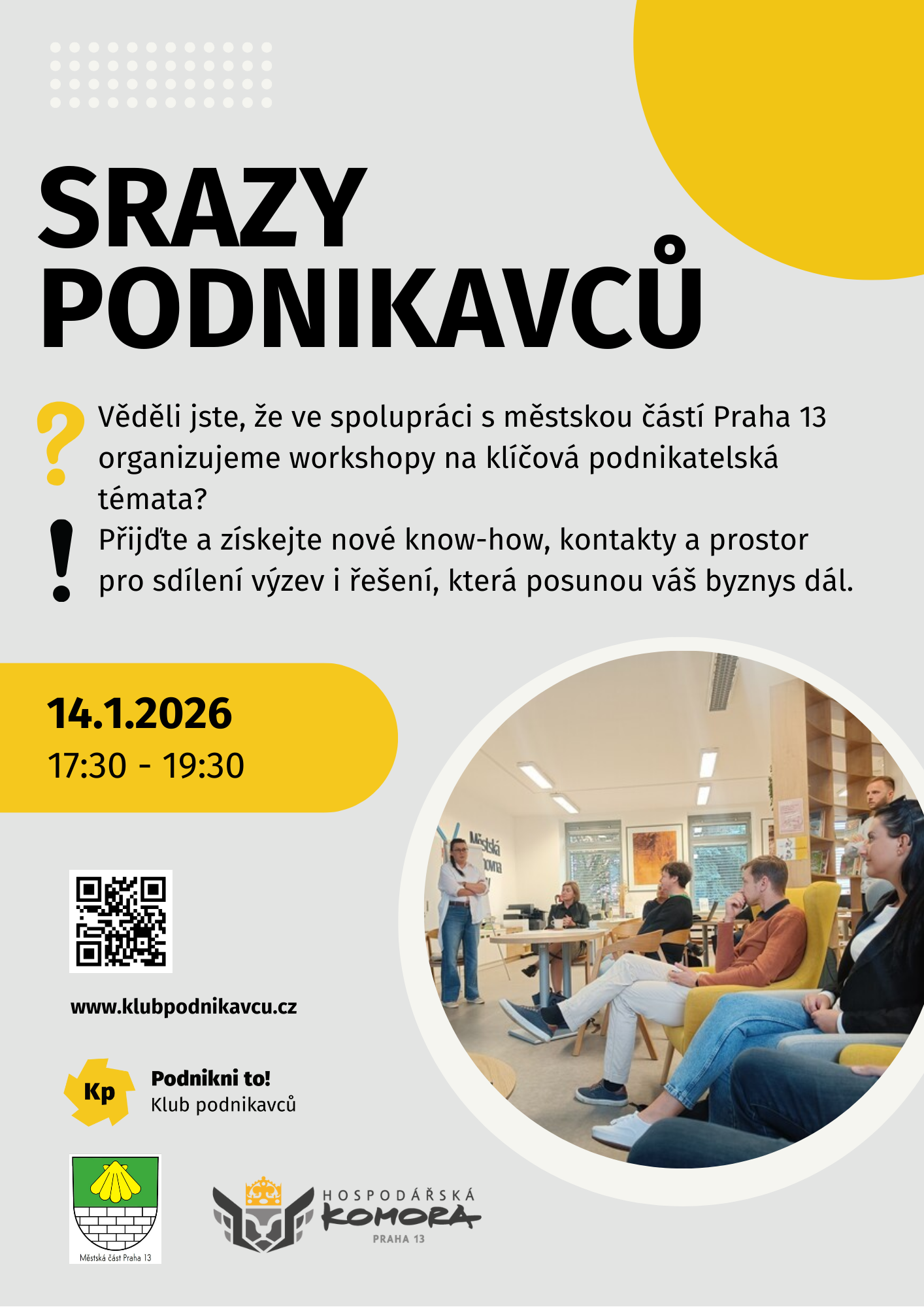 Věděli jste, že ve spolupráci s městskou částí Praha 13 organizujeme workshopy na klíčová podnikatelská témata?