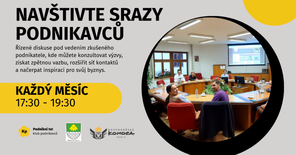 Přijďte si popovídat, inspirovat se a potkat další podnikavé lidi na Sraz Klubu podnikavců v Praze 13.