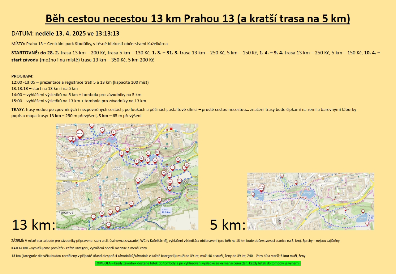 Sportklub Bessie opět pořádá závod ve znamení čísla 13 (ve spolupráci s MČ Praha 13).