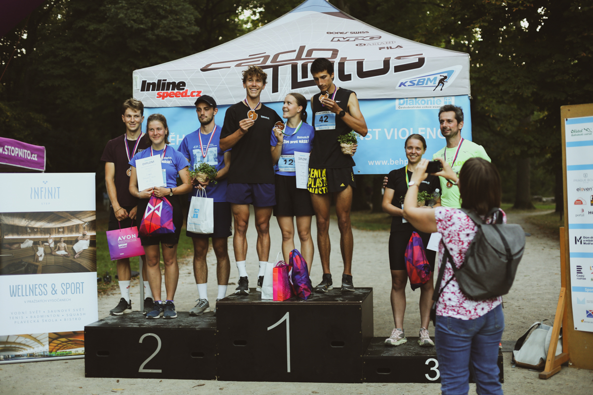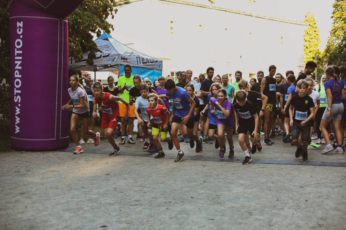 Pro první tři nejlepší běžce z každé kategorie budou připraveny věcné ceny. Dětský závod pro děti do 6 let o délce 100 m startuje v 16.30 a je rozdělen do dvou kategorií – pro nejmenší běžce od 1 roku do 3 let a od 4 do 6 let. Startovné pro nejmenší účastníky je zdarma. Trasa 2,5 km je připravena pro starší děti v kategoriích od 7 do 10 let a od 11 do 15 let. Startovné je pro ně150 Kč a vybíhá se spolu s dospělými v 17.30. Dospělí zaplatí při online registraci 300 Kč, na místě pak 350 Kč a celý výtěžek bude poukázán na realizaci programu Stop násilí.
