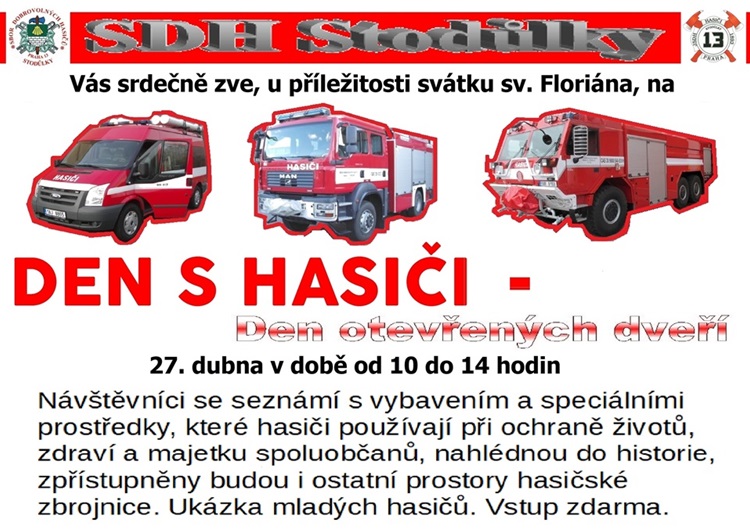 SDH Stodúlky vás zve v sobotu 27. dubna od 10 do 14.00 do naší zbrojnice na Velké Ohradě