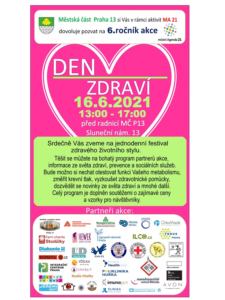 Ve středu 16. 6. 2021 se uskuteční již 6. ročník jednodenního festivalu Den zdraví.