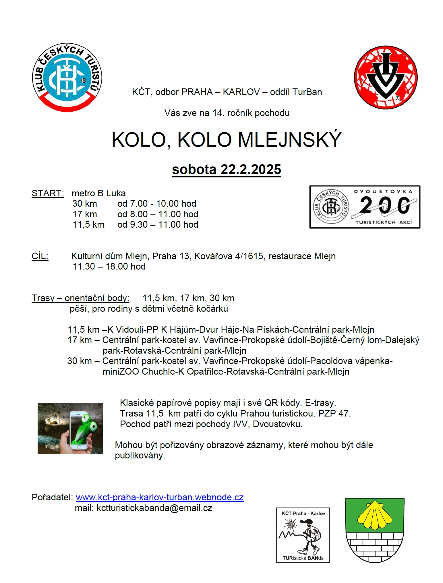 KČT, odbor PRAHA – KARLOV – oddíl TurBan Vás zve na 14. ročník tradičního pochodu po Praze 13 v sobotu 22.02.2025