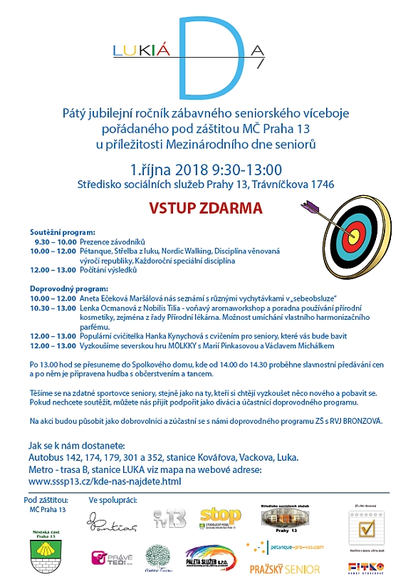 5. ročník – Lukiáda 2018 – seniorská olympiáda Zápis účastníků: 9,00 – 9,30 hod. Ukončení akce – do 13,00 hod.,