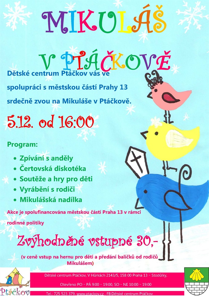 centru Ptáčkov těší od 16.00 čertíci v pekle i andělé s Mikulášem v nebi.
