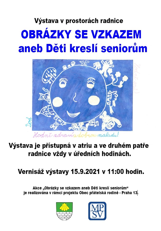 Výstava je přístupná v atriu a ve druhém patře radnice vždy v úředních hodinách. Akce „Obrázky se vzkazem aneb Děti kreslí seniorům“ je realizována v rámci projektu Obec přátelská rodině – Praha 13.