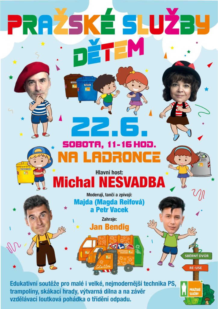 Druhá největší městská společnost po roce znovu zaplní Ladronku. Zábavný a vzdělávací rodinný den nazvaný Pražské služby dětem se v tomto sportovně-rekreačním areálu a parku uskuteční už podvanácté, tentokrát v sobotu 22. června od 11 do 16 hodin a nabídne jako vždy bohatý a pestrý program. Celým dnem provede moderátorské duo Magda Reifová a Petr Vacek. Vystoupí Michal Nesvadba nebo například Jan Bendig. Chybět nebude prezentace nejmodernější svozové a úklidové techniky Pražských služeb ani řada edukativních aktivit pro návštěvníky všech věkových kategorií.