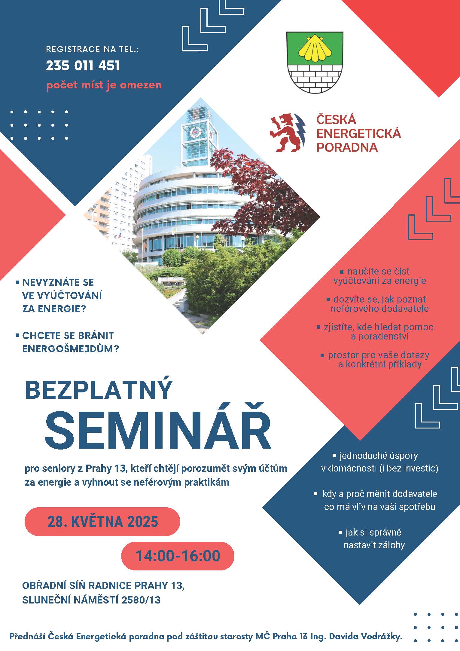 Přednáší Česká Energetická poradna pod záštitou starosty MČ Praha 13 Ing. Davida Vodrážky.