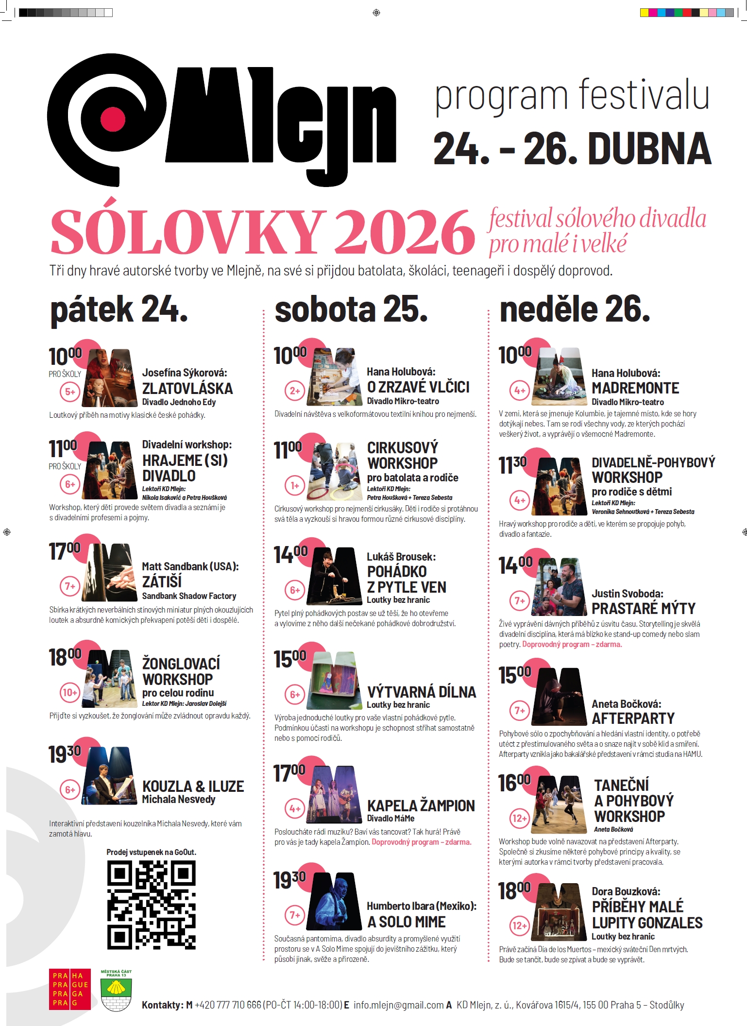 Kdy: pátek 24. dubna 2026 od 10:00 do 26. dubna 2026 18:00 hod. Kde: KD Mlejn, Kovářova 1615/4, Praha 13