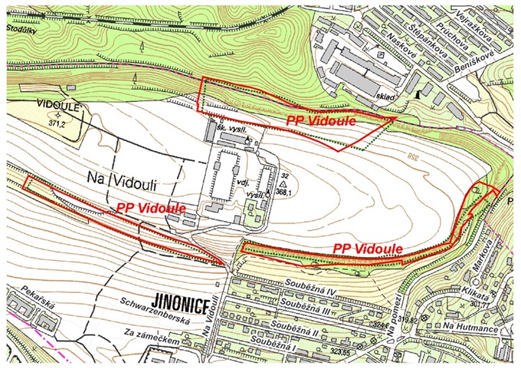 Historie Původní název Vidoule byl Vidova hora. V roce 1680 v době řádění moru byli na úpatí hory pohřbíváni ti, kteří nemoci podlehli. Až do roku 1948 byly jeskyně vyhloubené ve skále obývany pražskou chudinou. Z politického hlediska byla Vidoule v posledních letech místem ostré diskuze ohledně možné zástavby v jejím okolí. Na vrcholu kopce se kromě komplexu vodárny a jednoho školního areálu nacházejí zbytky bývalé protivzdušné obrany státu (PVOS) v podobě tvrzí, rozpadlých budov, podzemních chodeb, silnic a plotů, které jsou situovány směrem na západ, v těsné blízkosti pekárny Odkolek.