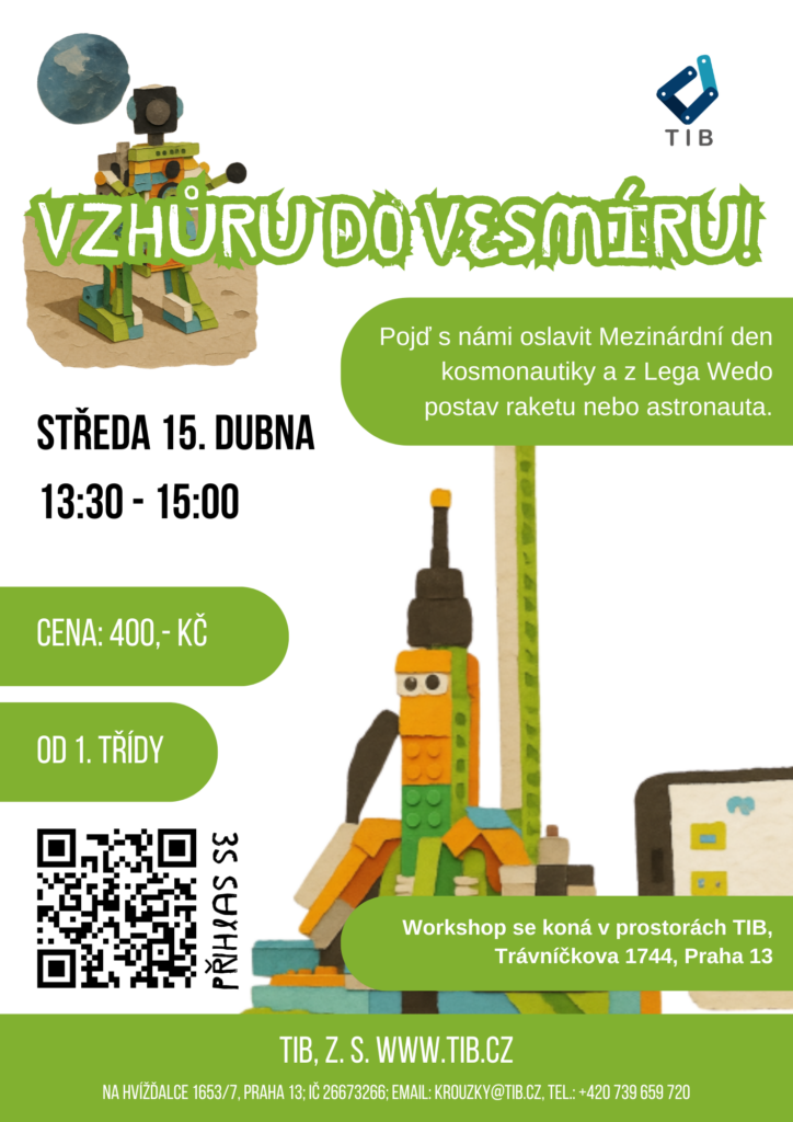 U příležitosti Mezinárodního dne kosmonautiky – 12. dubna – se vydáme na vesmírnou misi. Účastníci si postaví vlastní model rakety nebo astronauta ze stavebnice LEGO WeDo a následně ho pomocí jednoduchého programování rozhýbou. Děti si tak hravou formou vyzkouší základy robotiky a logického myšlení – a zároveň popustí uzdu své fantazii.