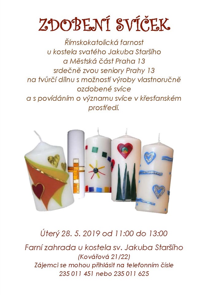 V úterý 28. 5. 2019 od 11 do 13.00 ve farní zahradě u kostela sv. jakuba Staršího ve Stodůlkách