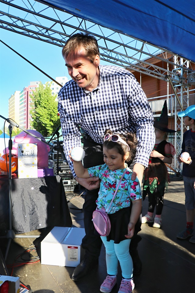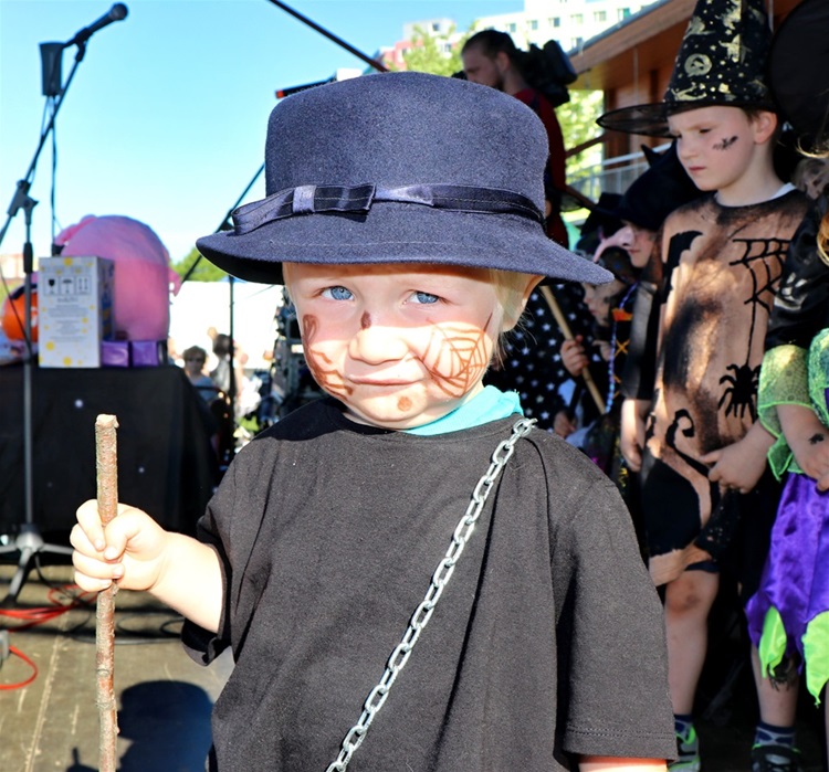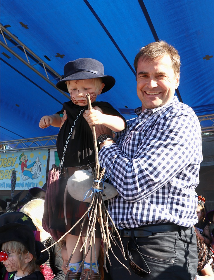 čarodějnického kostýmu, nezapálení vatry a maskotí show!