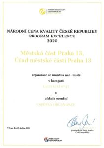 Certifikát – Národní cena kvality České republiky program EXCELENCE 2020