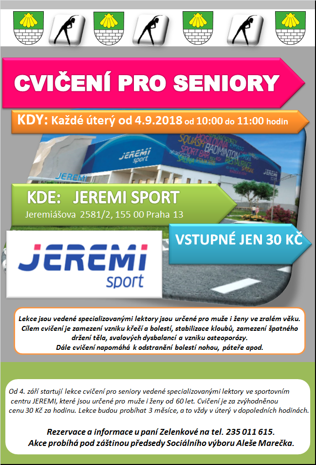 startuje od 4. září každé úterý od 10.00 do 11.00 po dobu 3 měsíců lekce cvičení pro seniory.