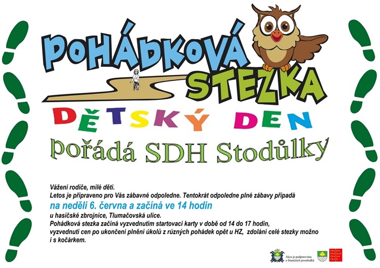 Sbor dobrovolných hasičů Stodůlky pořádá v neděli 6. června od 14.00 Den dětí. Tentokrát zve všechny děti a jejich rodiče na Pohádkovou stezku, kde na ně bude čekat řada úkolů, ale především spousta zábavy.
