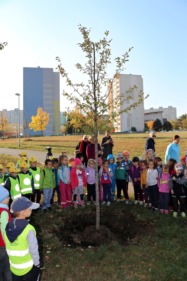 stromů zahájil místostarosta Pavel Jaroš spolu s dětmi z MŠ výsadbou habru
