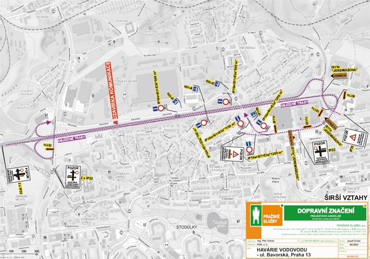 umístěn pod vozovkou, je uzavřena Bavorská ulice. Předpoklad doby opravy je 14