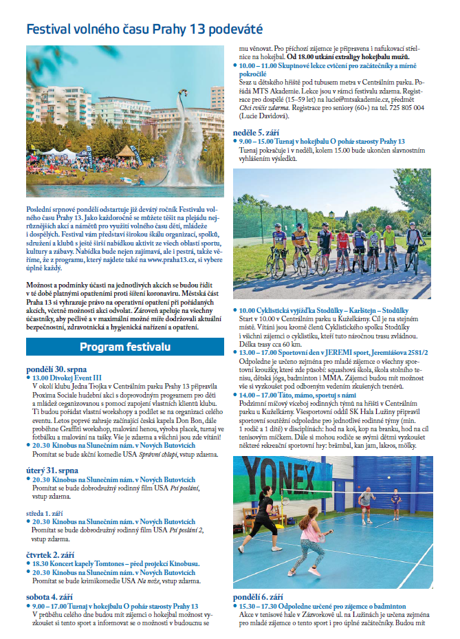 Prahy 13. Jako každoročně se můžete těšit na plejádu nejrůznějších akcí a