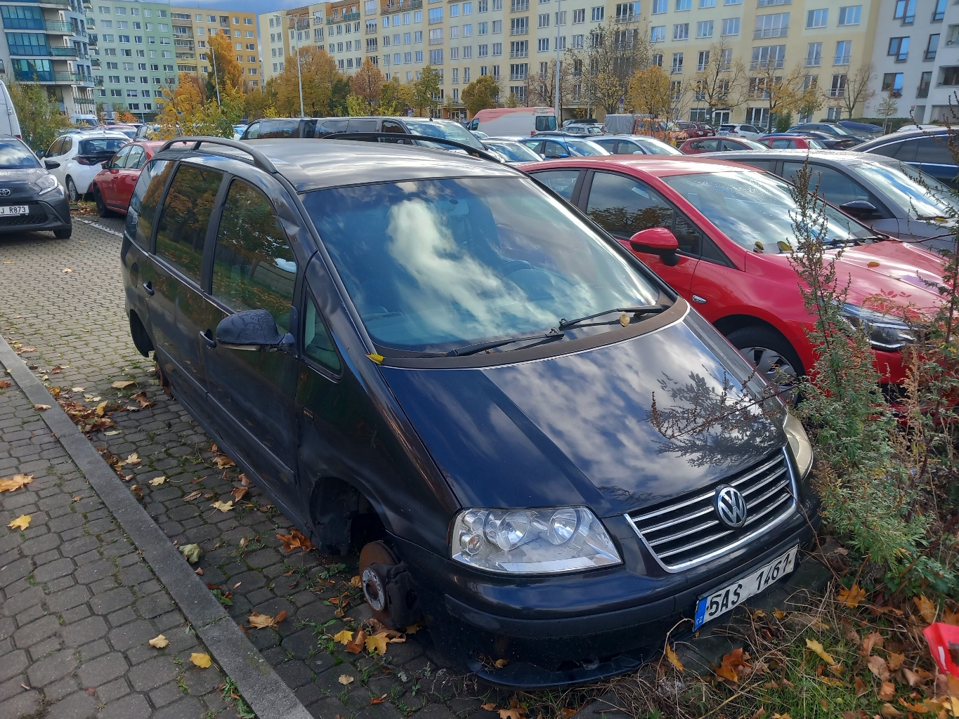 Vrak VW 3AT4477, prázdné přední kolo, několik měsíců propadla technická kontrola