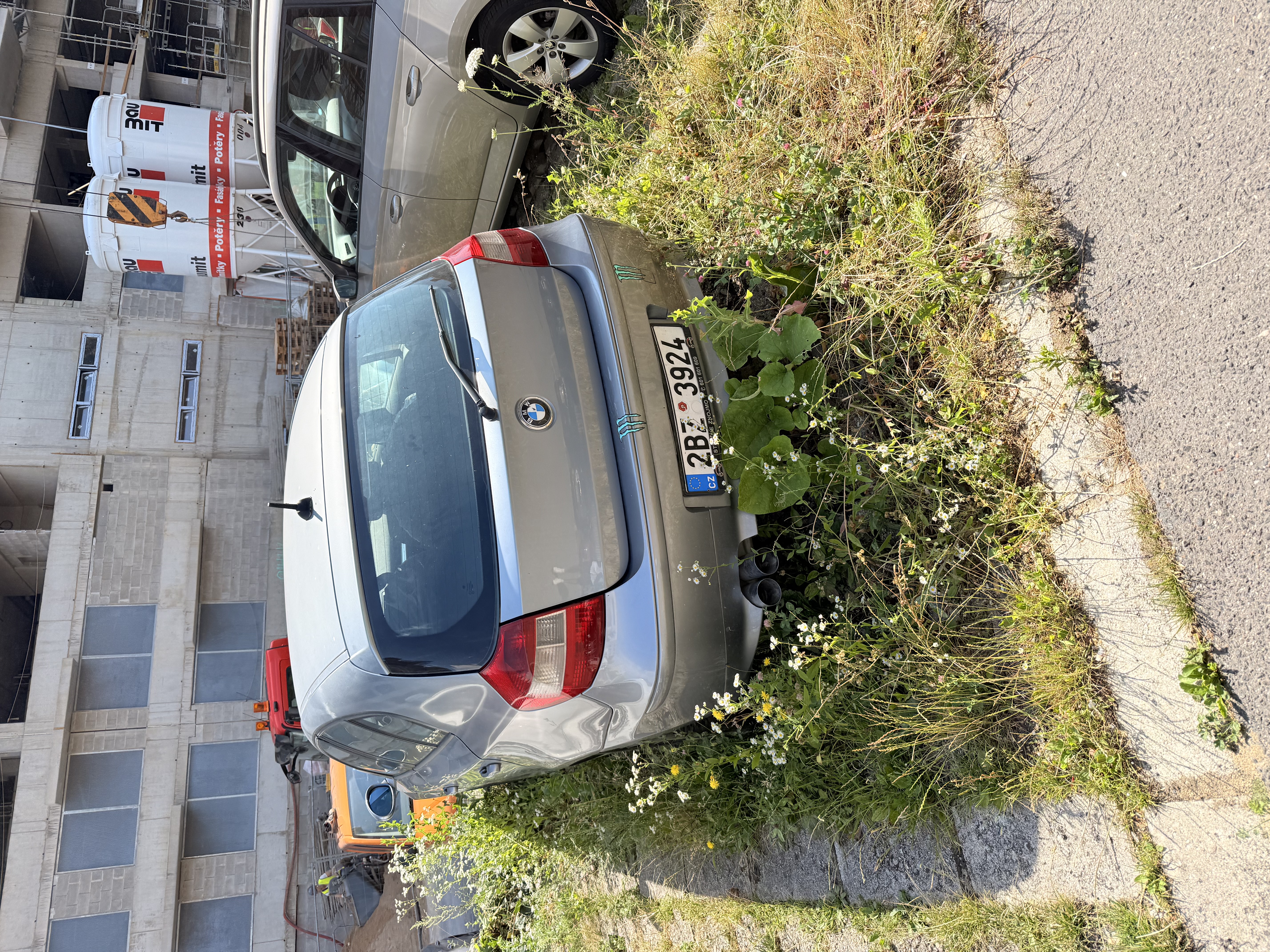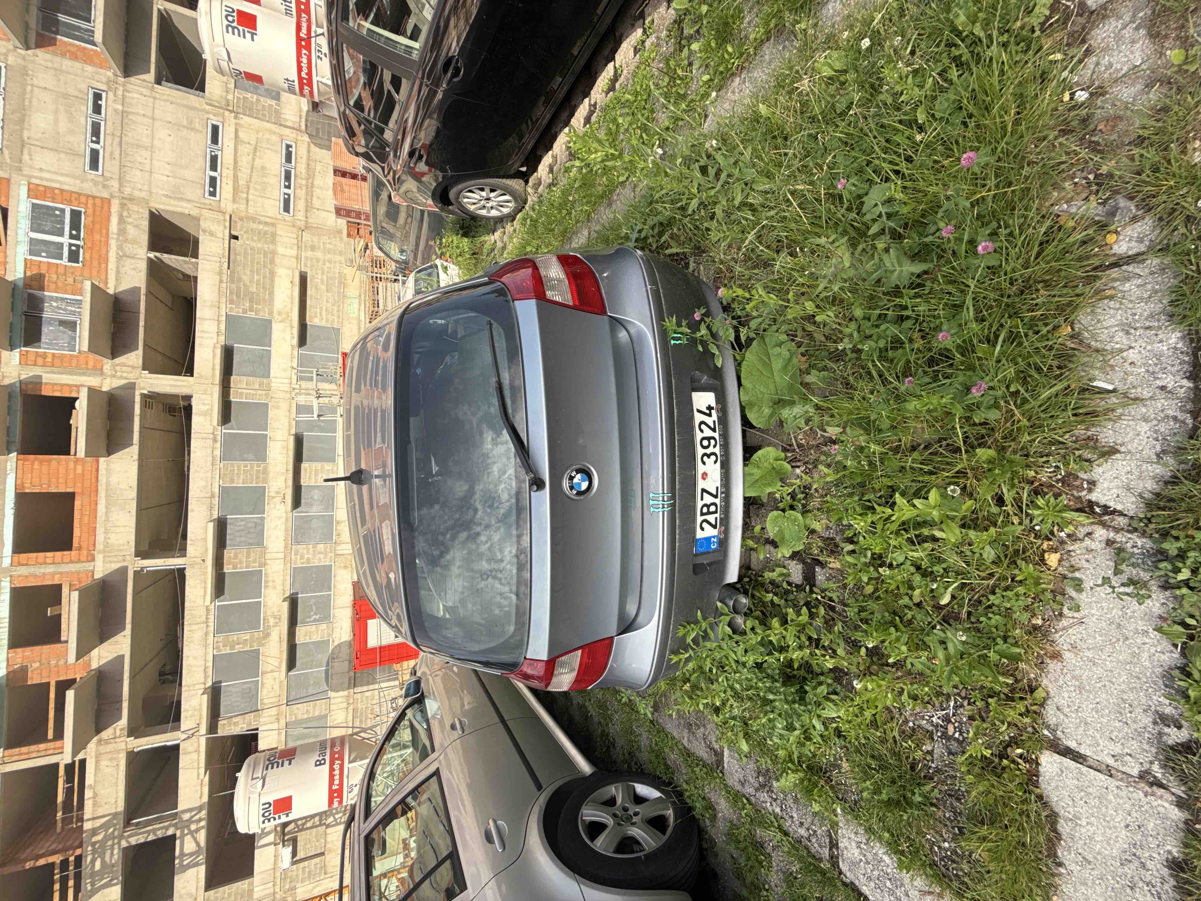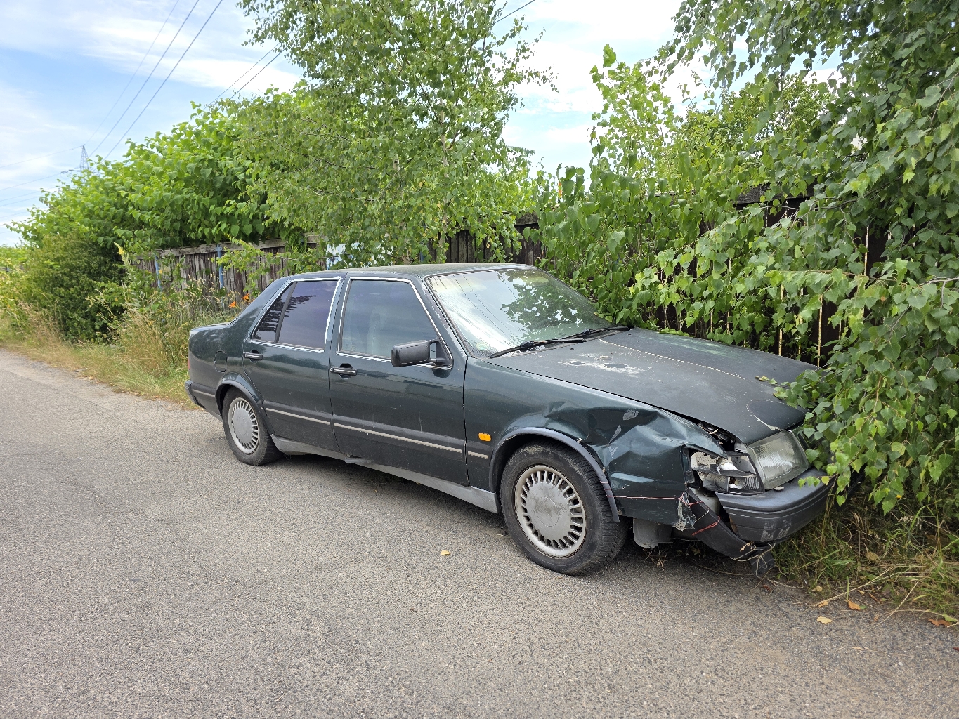 Bourané vozidlo bez SPZ odstavený do zeleně.
