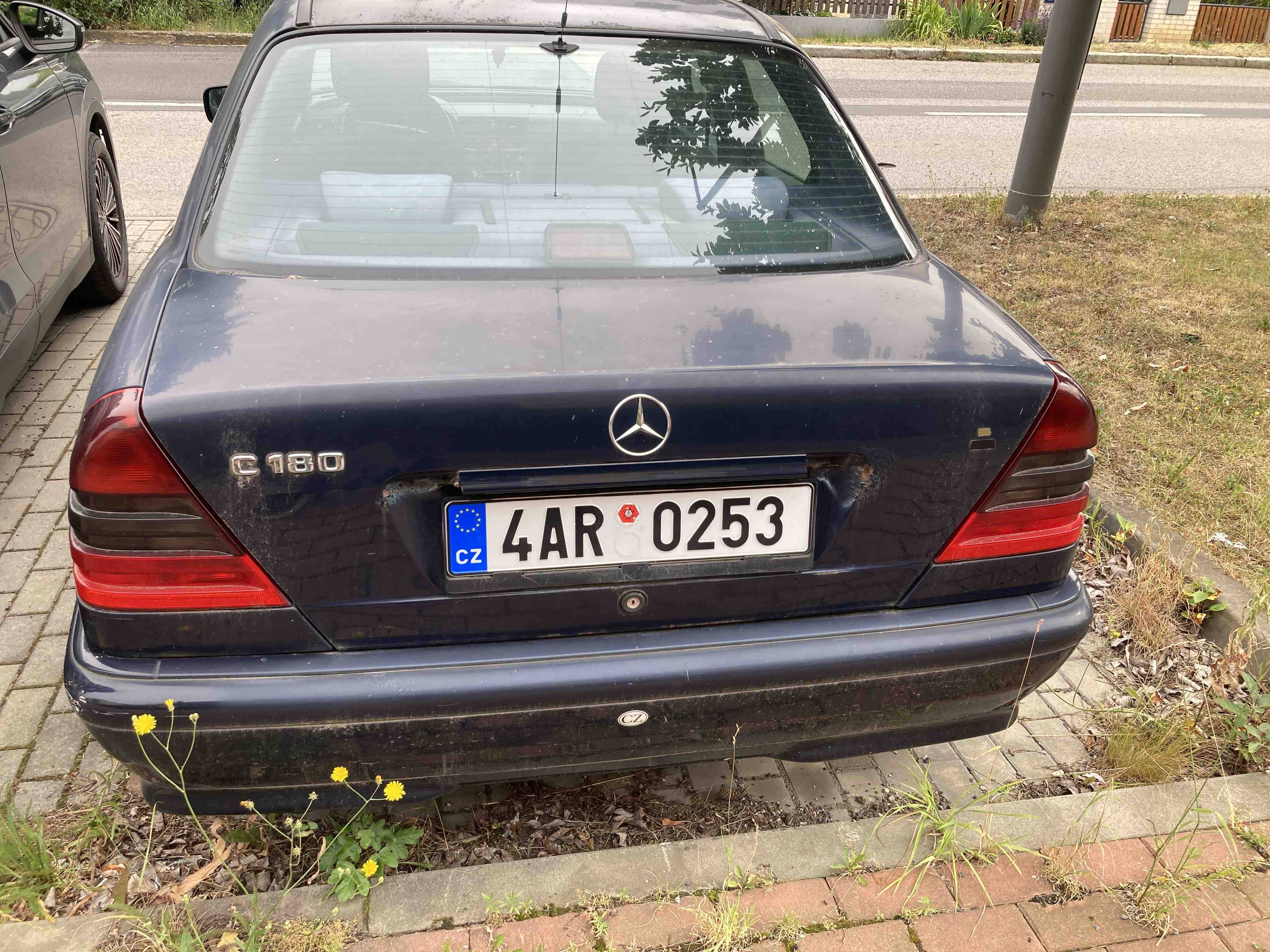 Odstaveny uzitkovy nepojizdny automobil v obytne zone.