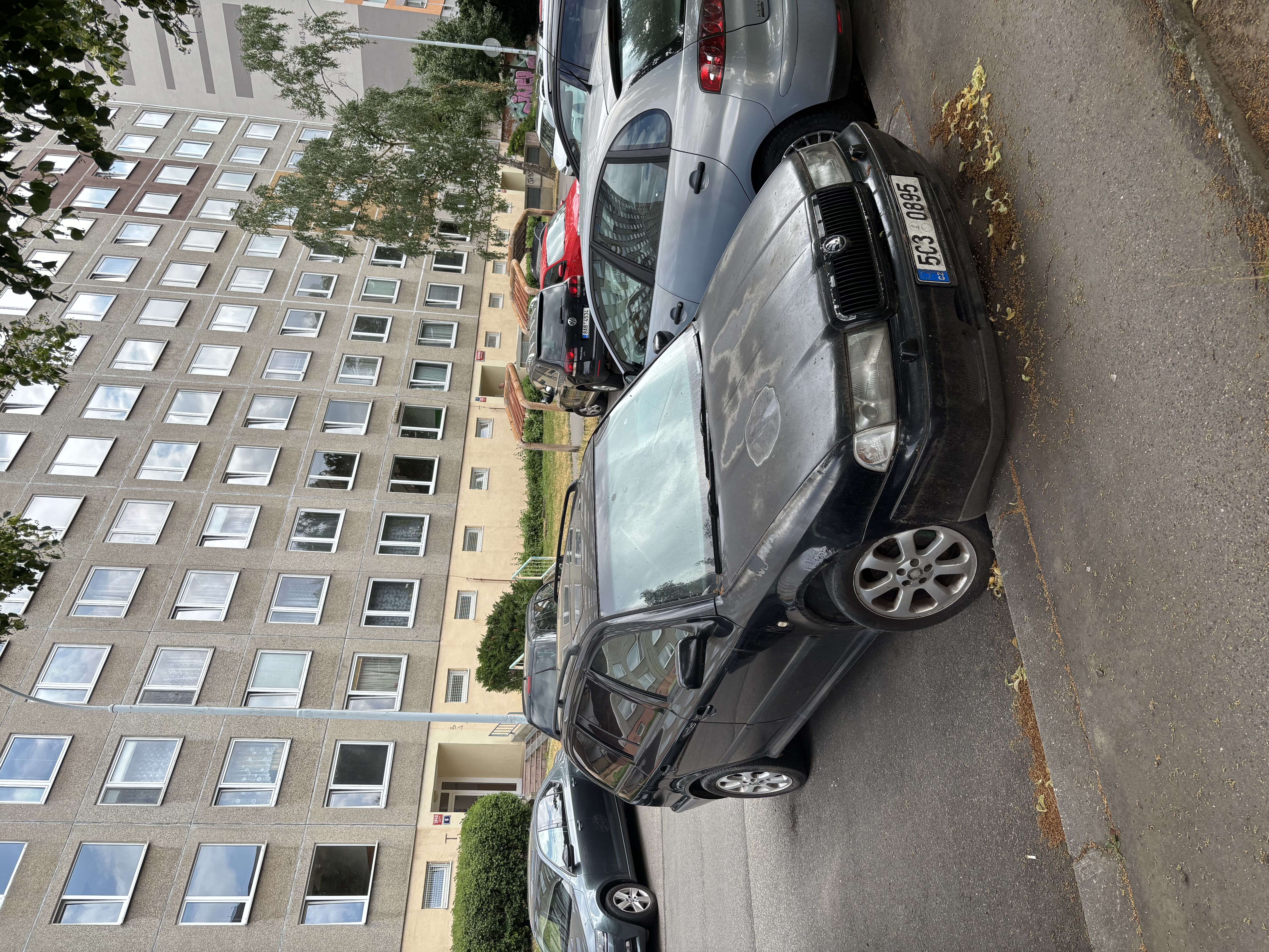 Vraky na velkém parkovišti před domem Běhounkova 31