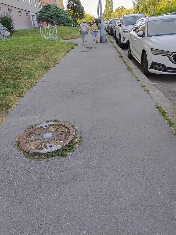 Dobry den, nahlasuji Vam uvolneny a chybejici poklop (viz foto), ktery se nachazi na chodniku na adrese K zahradkam 1289/4. GPS: 50.0490522N, 14.3300369E S pozdravem, L. obyvatel Prahy 13