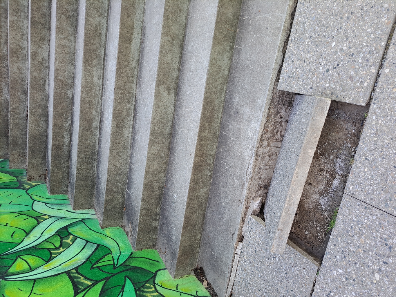 schodiste z archeologicke k zakladni skole je znicene, zelezo rezave, odchilple, je treba opravu a overit dlouhodoubou stabilitu. po nocich tam sedi bezdomovci, co rano pro deti neni bezpecne, kdyz prochazeji pres cigaretove krabicky a odpad po jidle.