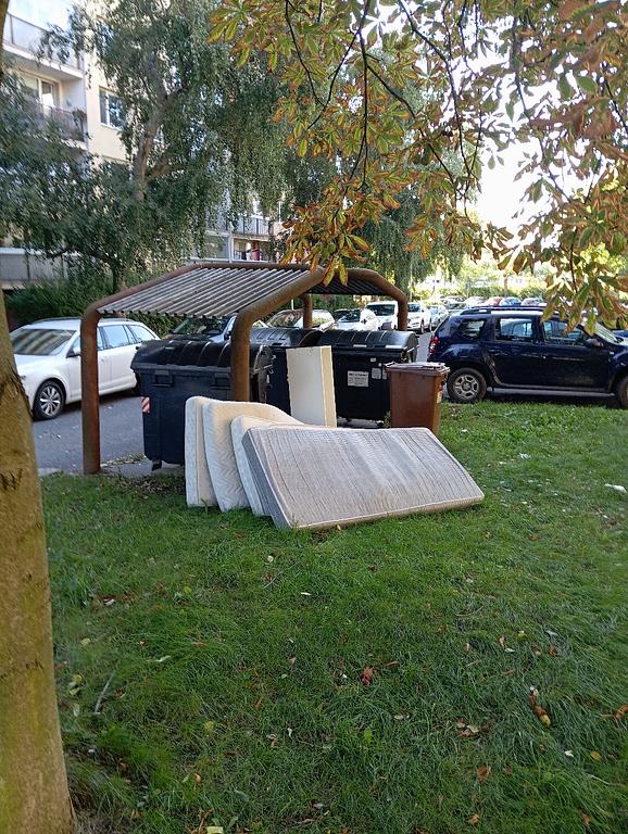 Prosím o úklid u popelnic, který je zde už od začátku prázdnin