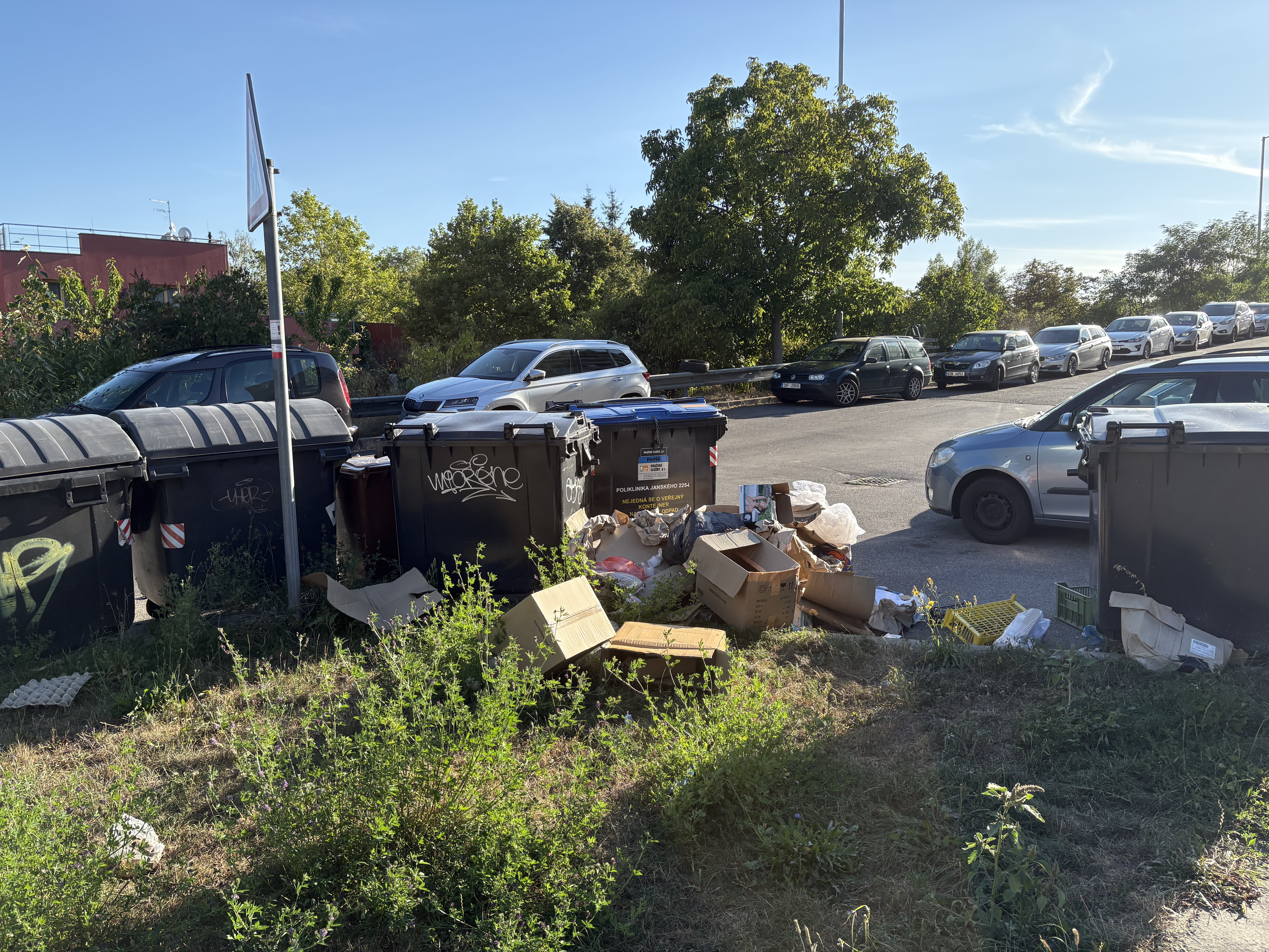 Prosím o úklid u popelnic, který je zde už od začátku prázdnin