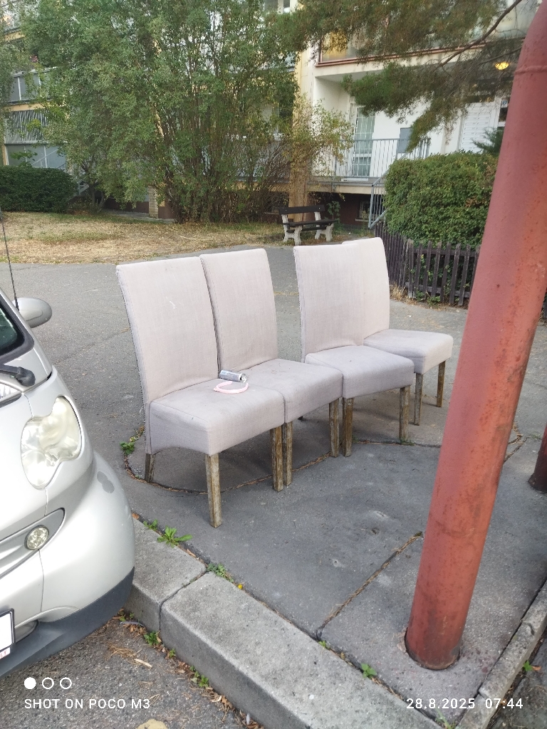 Odpad-židle vedle kontejnerů kom. odpadu
