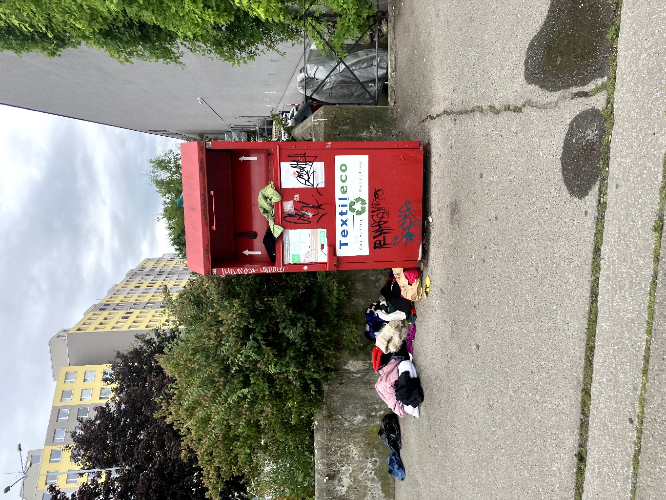 tento kontejner asi nepatří společnosti Helptex nicméně je každodenně vybírán bezdomovci a pak to takto dopadá. Upozorněte provozovatele. Asi přeplněný. Stejný bordel jako s kontejnery společnosti Helptex.