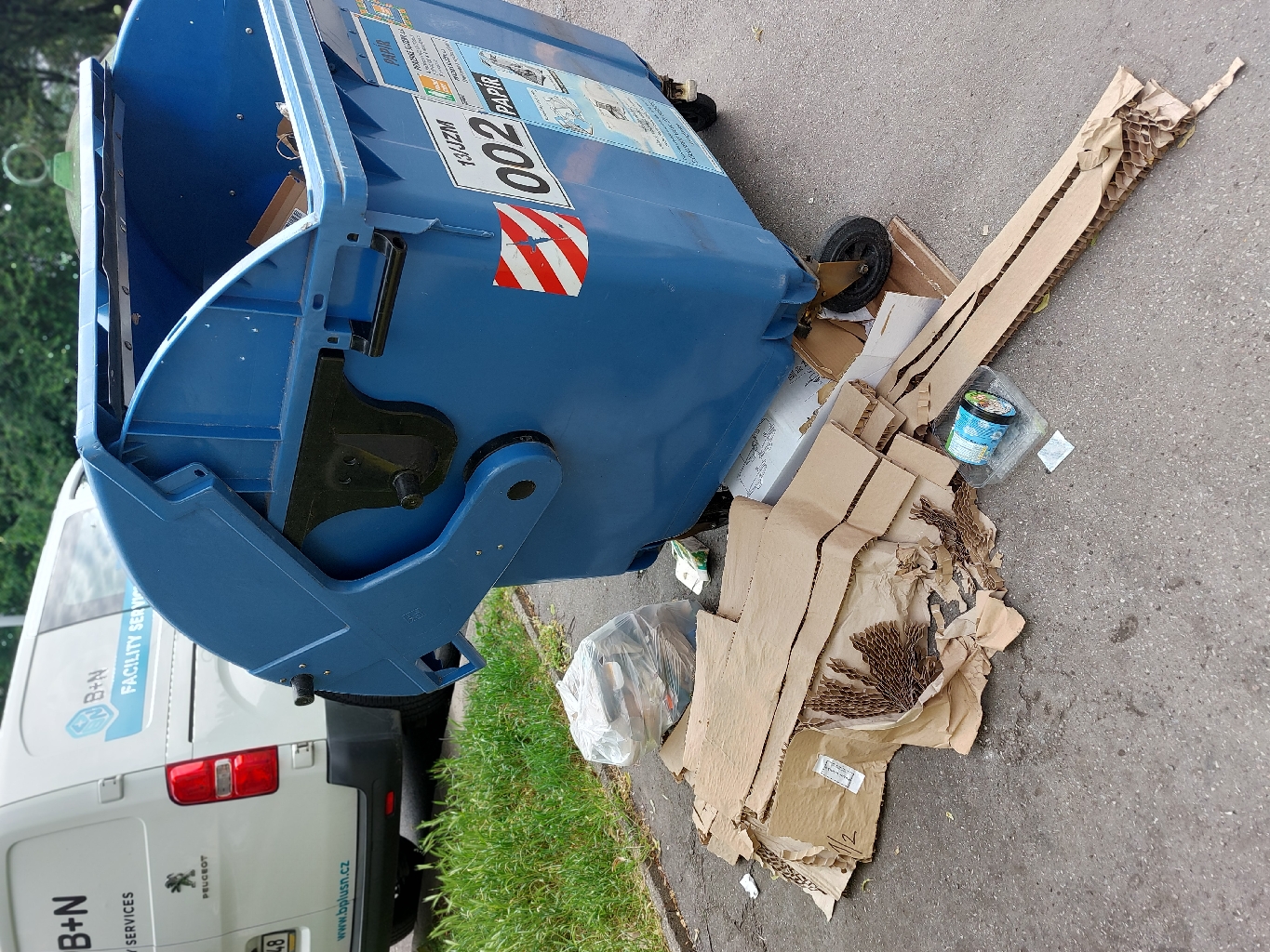 Kolem kontejnerů na plasty a papír zůstal nepořádek