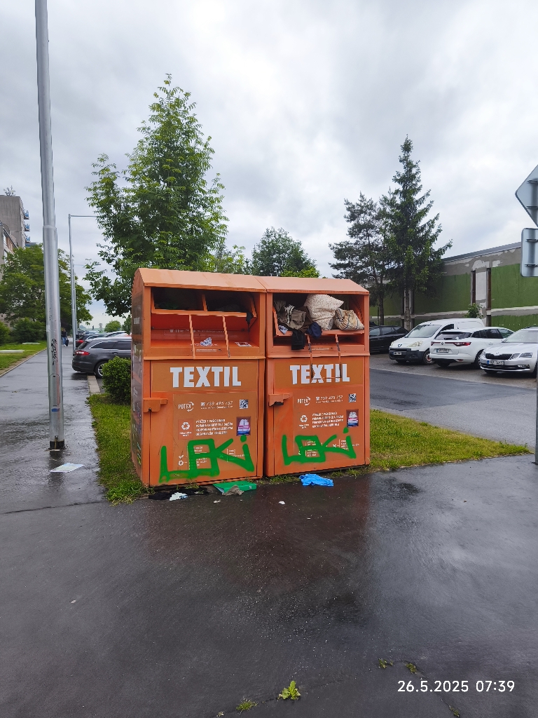 nelíbí se mi přemístění plechoveho kontejneru na trávě, žluté popelnice na různých mistech,navic nelze nebo obtížně vhazovat dob otvorů sklo nebo plech, sim o nápravu, žluté popelnice u sebe, kontejnery z travy a uvolnit vhazovani u kontejneru