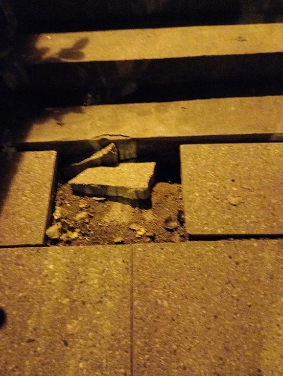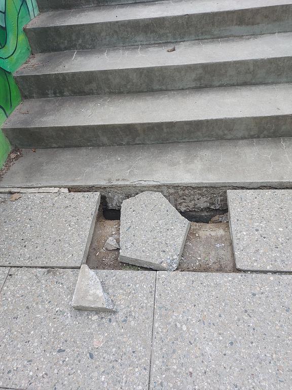 rozbitá dlažba u schodiště