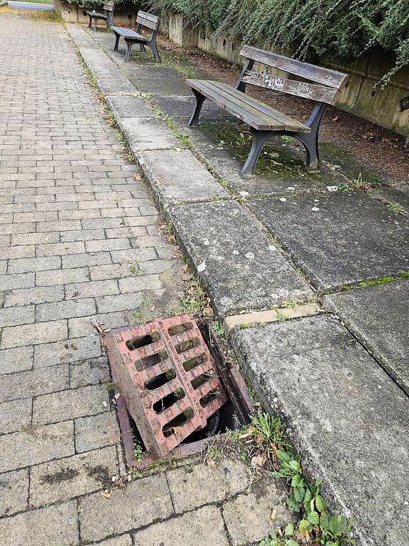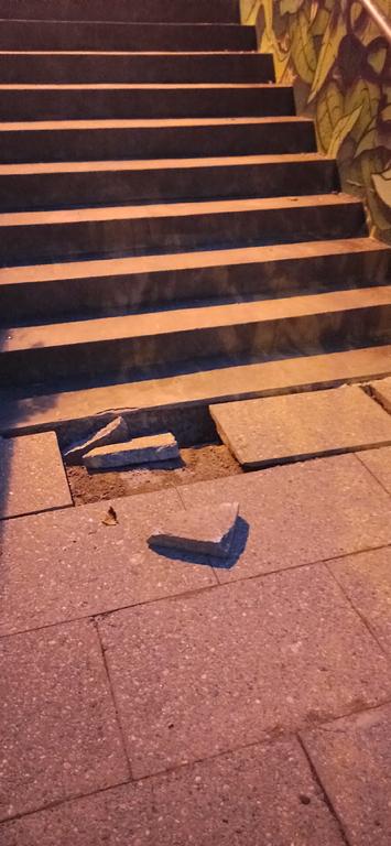 662/2025 Zničená deska před schody přes tubus metra v ul. Archeologická