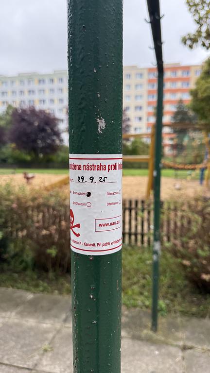 Dobrý den, předem se omlouvám, jestli dotaz/závada nepatří sem. Dnes jsem venčil psa, ve v vnitřním čtverci na sídlišti Velká Ohrada a přibližně 20-30cm od kraje chodníku byl údajně položen travný materiál proti hlodavcům. Položen byl stále na vydlážděné části chodníku u bývalých “sušáků” v těsné blízkosti dětského hřiště. Chtěl jsem se zeptat zda je…