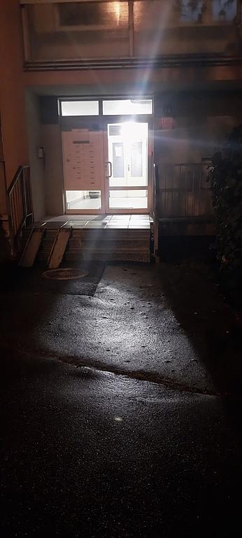 Schody u tubusu Metra (u tenisových kurtů) jsou poškozené, možná to již někdo hlásil.