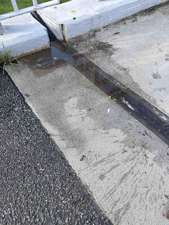 Ucpaný odtok dilatační spáry na mostu směrem VO.
