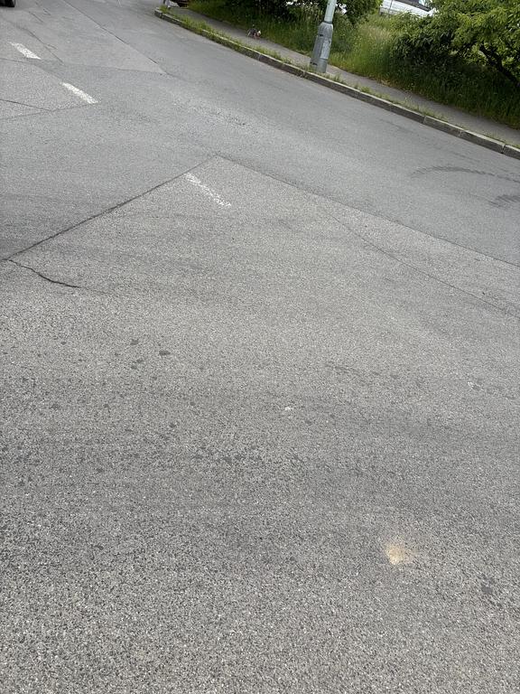 Velmi výrazný hrbol na silnici, je potřeba zarovnat. https://maps.app.goo.gl/BZAQEGbwtkF3dyc89