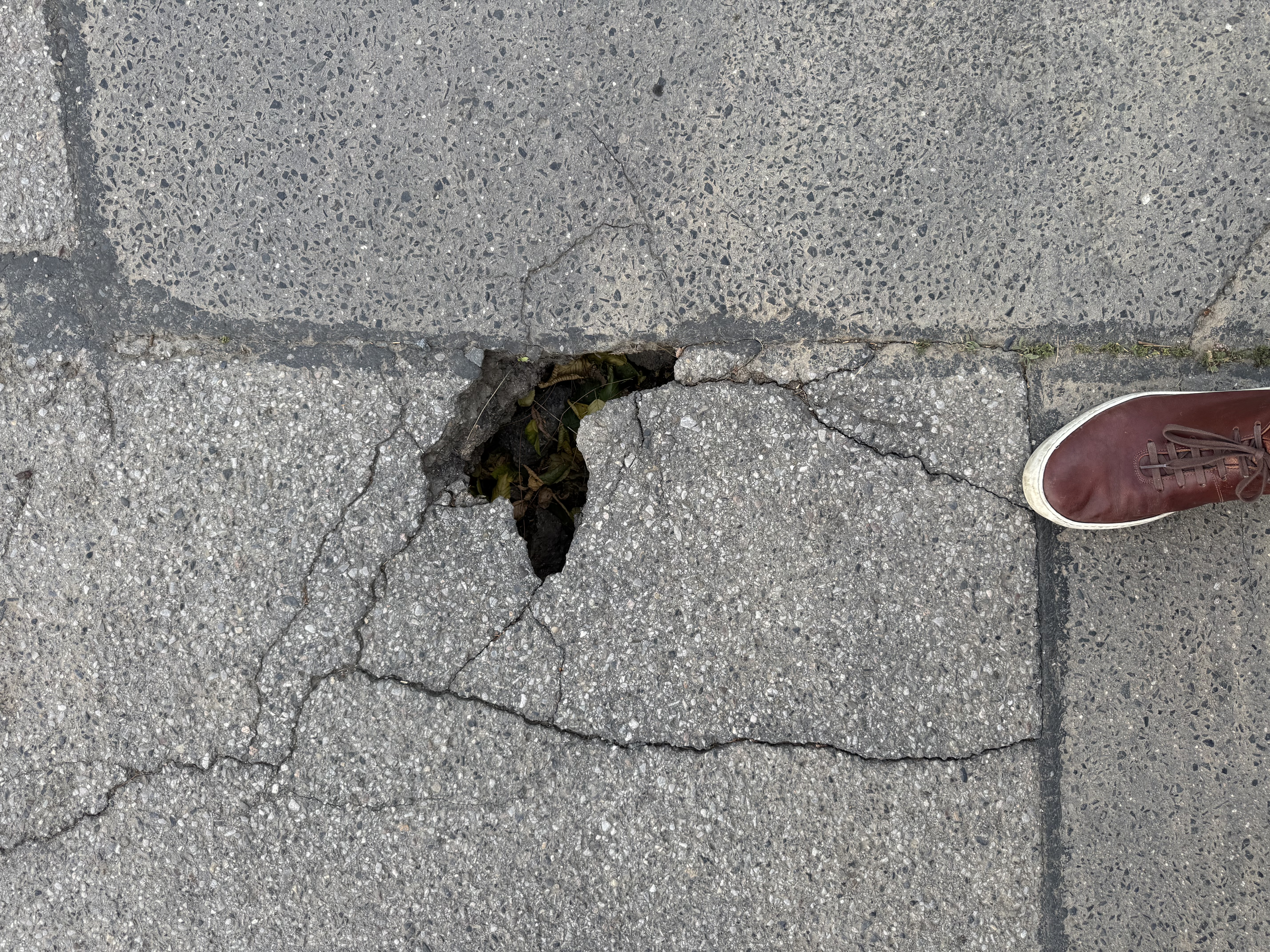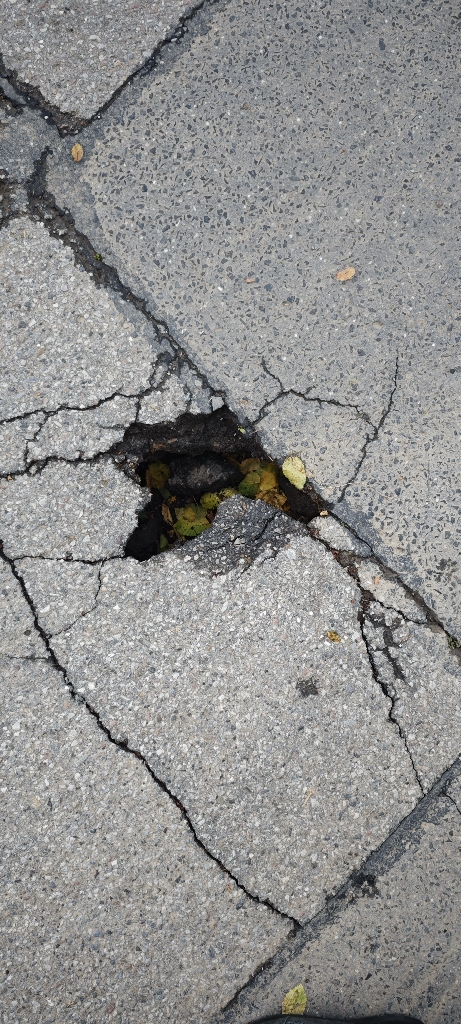 Díra vedle kanálu je hluboká asi 30cm a je i pod ještě nepropadlou silnicí