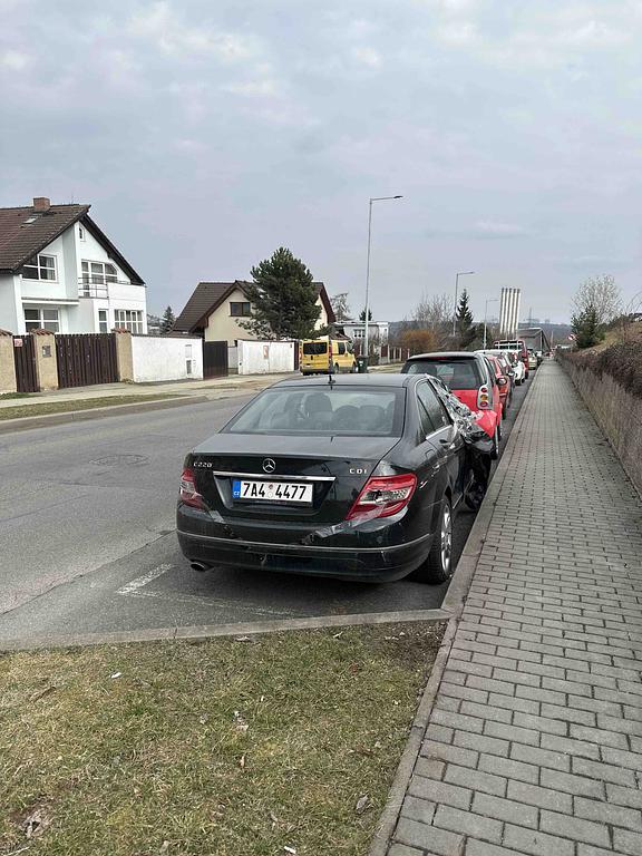 Nebezpečné osazený kontejner. Nevhodně povolený zábor.