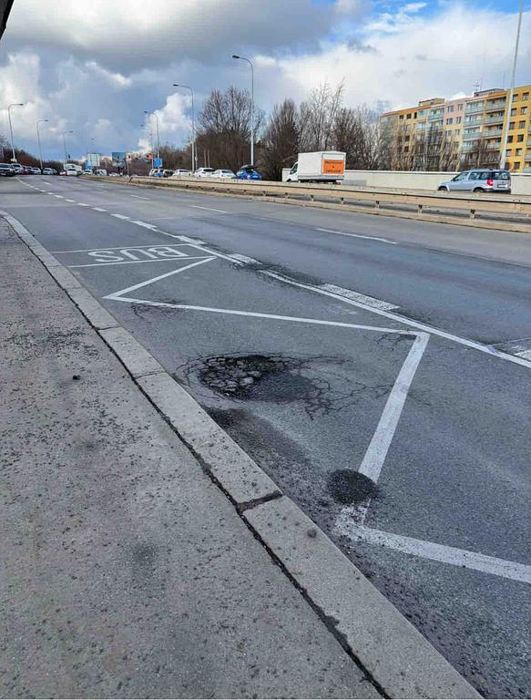 Díry v alfaltu co by zasloužily zalepit, autobusy jim dávají dost zabrat, zvlášť teď, po zimě.
