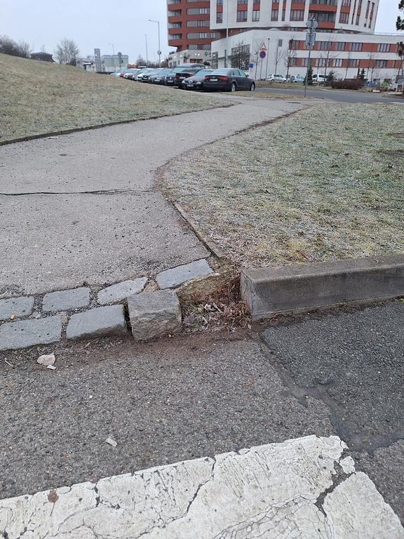 rozpadlý obrubník u přechodu