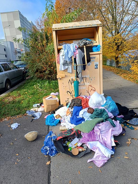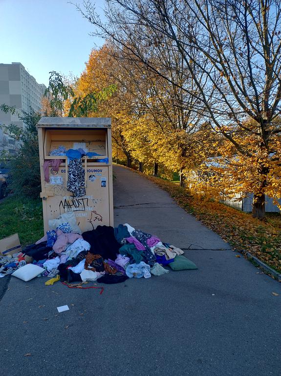Dobry den, Posilám stav kolem kontejneru na oblečení dnes dopoledne v zatáčce proti podniku BARBAR (Archeologicka x Bronzova). Je to bohužel téměř denně. V tomto miste je to zřejmě neuhlídatelne. S pozdravem St. S.