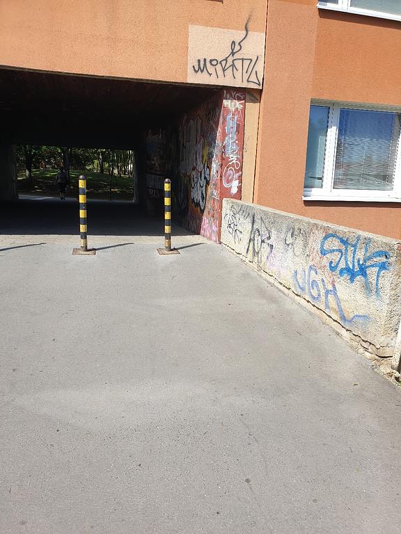 Podchod, kterym se obyvatele pohybuji smerem od OC Luziny (2.patro, smer skola) do svych domovu. Adresa: Brdickova 11